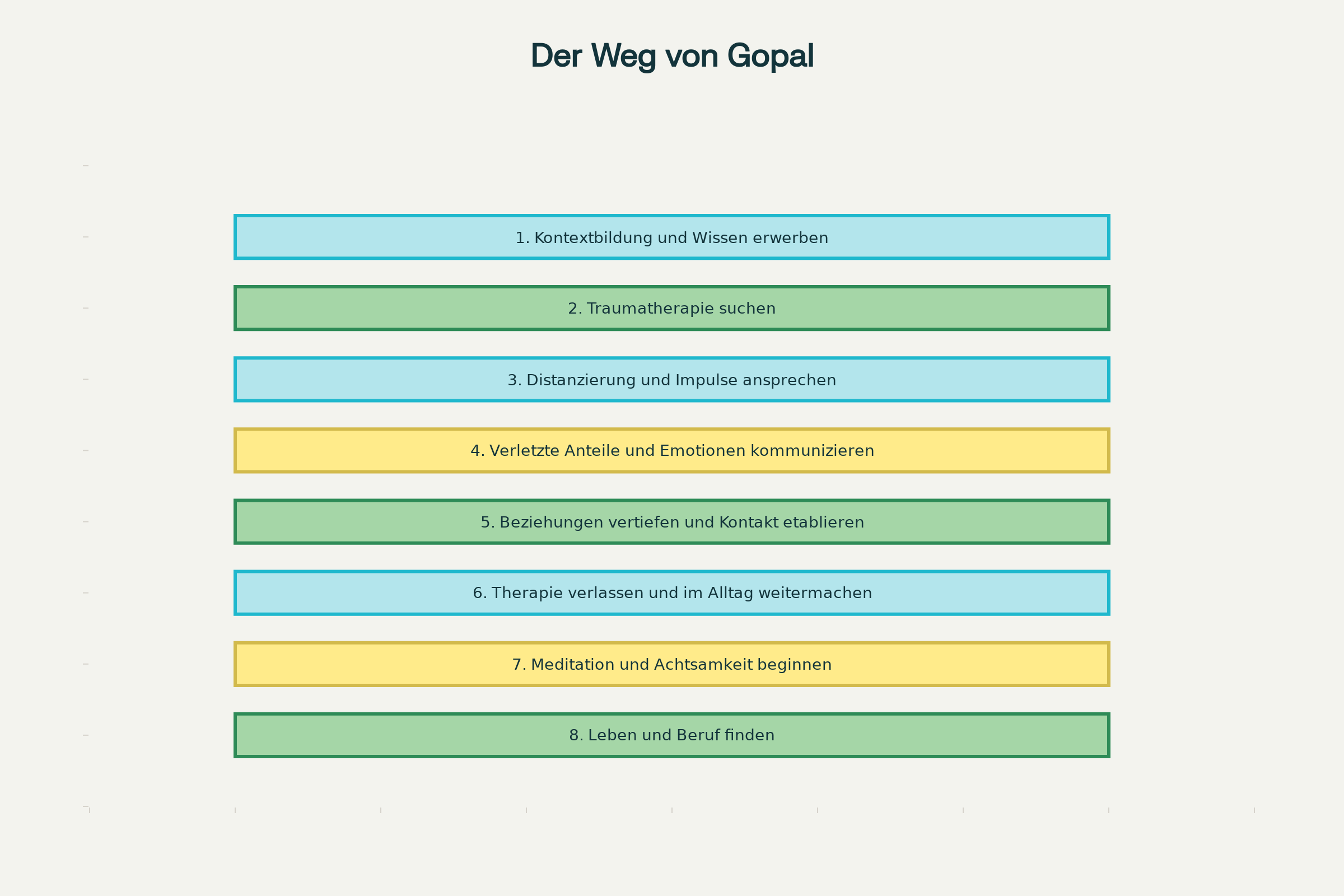 Ein strukturierter Ansatz zur Heilung von Entwicklungstrauma in neun klaren Schritten. Dieser Weg integriert alle wichtigen Elemente der Traumaheilung - von der Nervensystemregulation über ehrliche Kommunikation bis hin zu täglicher Praxis.